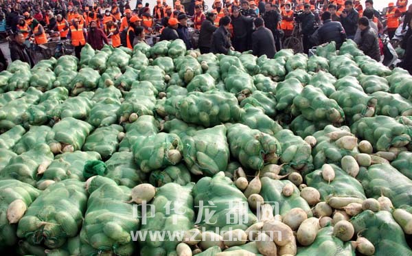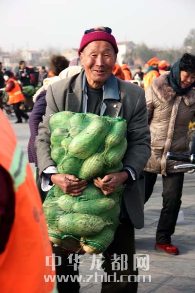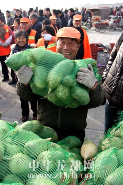 當(dāng)天上午,淮陽縣太昊陵廣場(chǎng)人頭攢動(dòng),1000余名貧困家庭代表早早地來到現(xiàn)場(chǎng)等候。9時(shí)許,“愛心蘿卜”開始免費(fèi)發(fā)放。僅一上午時(shí)間,20萬斤蘿卜就被認(rèn)領(lǐng)一空。