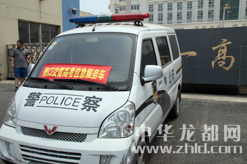 周口市交警支隊(duì)在每個(gè)考點(diǎn)設(shè)立了高考應(yīng)急服務(wù)車(chē)。