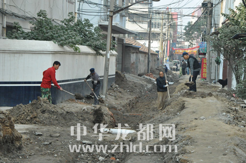 ????記者在新街支路的改造工程施工現場看到,該路段東西兩側各有一輛工程車正在作業(yè),道路的兩層灰土層已經鋪好,數十名施工人員正在開挖污水管道。