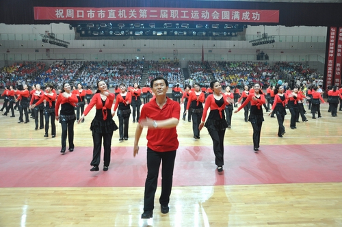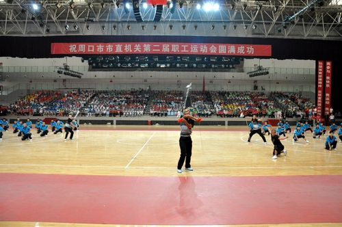 ????開幕式后,由周口市教育局、周口市公路局、周口市直機(jī)關(guān)事務(wù)管理局、周口市直幼兒園四個(gè)參賽單位共同表演的第九套廣播體操拉開了文體表演的序幕。周口師范學(xué)院推薦的青春健美舞,周口太極協(xié)會(huì)的太極刀、太極劍、太極扇表演,周口市秧歌協(xié)會(huì)推薦的中老年健美舞和周口三通武校帶來(lái)的精彩武術(shù)表演等全民健身項(xiàng)目展演。