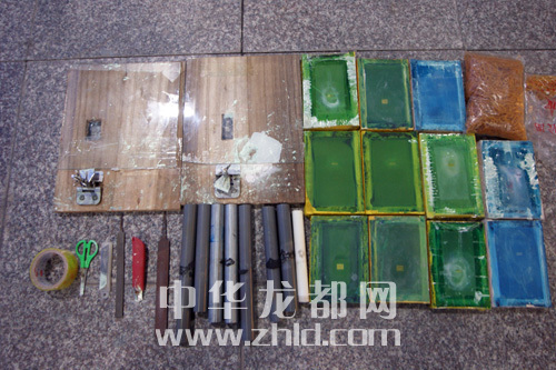 ????同年11月5日,在獲知許某、韓某夫婦再次從廣東購得假幣,并已伙同孟某完成防偽加工工序的準(zhǔn)確信息后,為避免假幣流入市場,周口公安機(jī)關(guān)經(jīng)偵部門“收網(wǎng)”。11月6日,市公安局犯罪偵查支隊經(jīng)偵三個大隊全體民警在文昌分局許灣中隊、沈丘縣公安局經(jīng)偵大隊的協(xié)同配合下,直撲犯罪窩點。于當(dāng)天下午2時許,在沈丘縣抓獲犯罪嫌疑人韓某、孟某及其他涉案人員,并在孟某家中當(dāng)場繳獲假幣數(shù)百萬元(圖一),假人民幣加工模具12套(圖二)。