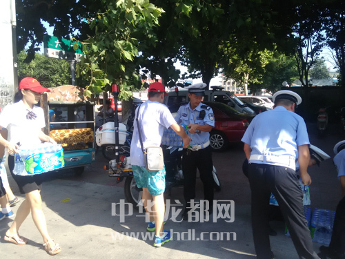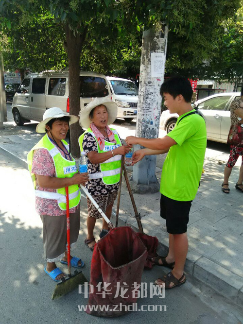 ????又是一年最熱時(shí),在馬路上工作的交警和環(huán)衛(wèi)工可謂備受煎熬。有感于交警和環(huán)衛(wèi)工的辛苦,7月29日,愛心學(xué)校和公益機(jī)構(gòu)以送瓶裝礦泉水的方式,向他們表達(dá)了自己的敬意。晚報(bào)記者 郭坤 張燕 攝