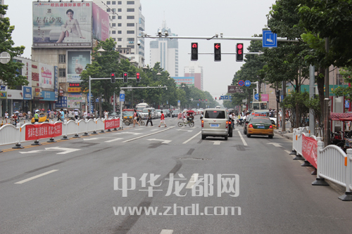 ????據(jù)了解,隨著七一路(六一路至中州大道段)的升級改造完成,該路段路面拓寬,通行非常暢通,還增加了很多人性化、都市化的設(shè)施:雙向4車道變成雙向9車道,路口的紅綠燈變成雙信號燈(圖一),取消了安全島,重新施劃了非機(jī)動車道和行人斑馬線(圖二),增加了左轉(zhuǎn)帶調(diào)頭標(biāo)線等。