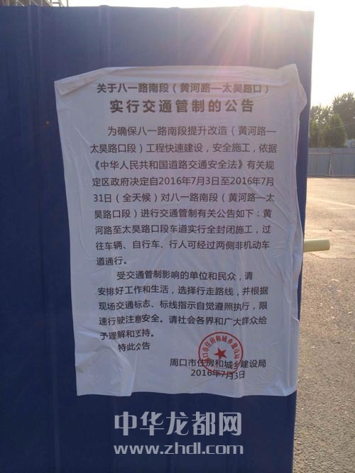 ????當(dāng)日下午,周口晚報(bào)記者在八一大道南段看到,原火車(chē)站鐵道口至太昊路路段的雙向機(jī)動(dòng)車(chē)道已全線封閉,“過(guò)往車(chē)輛請(qǐng)繞行”的交通警示牌也已豎立在路口,幾輛施工車(chē)輛正在現(xiàn)場(chǎng)緊張忙碌地備料、開(kāi)挖路面。