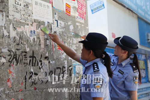 ????為深入推進創(chuàng)建省級文明城市工作,周口市公安局荷花分局民警走上街頭,逐一鏟除張貼在墻上、電線桿、商鋪門口等地方的小廣告。