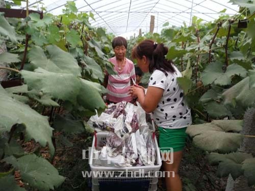 ????在農(nóng)場(chǎng)的葡萄大棚里,一串串葡萄被套上了塑料袋,形成了五顏六色的奇特景觀,社員正忙著采摘裝箱(如圖)。農(nóng)場(chǎng)技術(shù)人員介紹:“給葡萄套袋,可以明顯改善果實(shí)品質(zhì),保護(hù)果實(shí)不受病蟲害侵襲,減少農(nóng)藥殘留,防鳥啄食,改善果實(shí)外觀,提高果品檔次,是當(dāng)前生產(chǎn)高品質(zhì)、無(wú)公害葡萄的有效措施。”