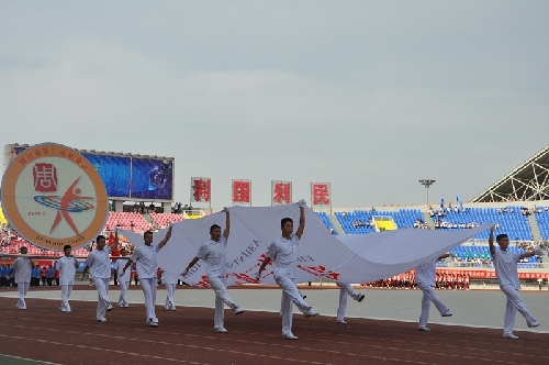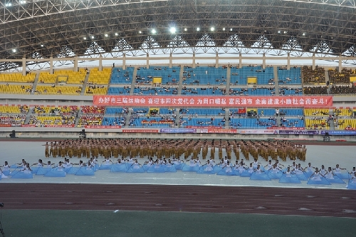 ????當(dāng)日16時(shí),國(guó)旗方陣、會(huì)旗方陣、彩旗隊(duì)、裁判員、運(yùn)動(dòng)員依次入場(chǎng),一個(gè)個(gè)意氣風(fēng)發(fā)的團(tuán)隊(duì)引來(lái)現(xiàn)場(chǎng)觀眾陣陣掌聲和歡呼聲:周口川匯區(qū)代表團(tuán)首先入場(chǎng),他們步伐矯健,英姿勃發(fā);市委辦公室代表團(tuán)精神抖擻,意氣風(fēng)發(fā);市委宣傳部代表團(tuán)邁著矯健的步伐走向主席臺(tái)……