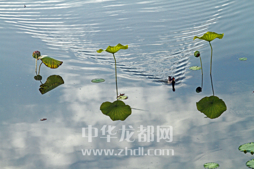 ????此時的荷塘,呈現(xiàn)出一派秋的氣象。雖然荷葉已經(jīng)卷曲枯萎,蓮蓬也已枯黃,扭曲的荷梗穿插其間,繁華褪盡,滿池清麗,卻呈現(xiàn)出一番別樣的秋韻之美。