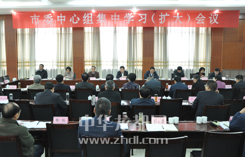 市委中心組集中學(xué)習(xí)(擴(kuò)大)會(huì)議現(xiàn)場。記者 王映 攝