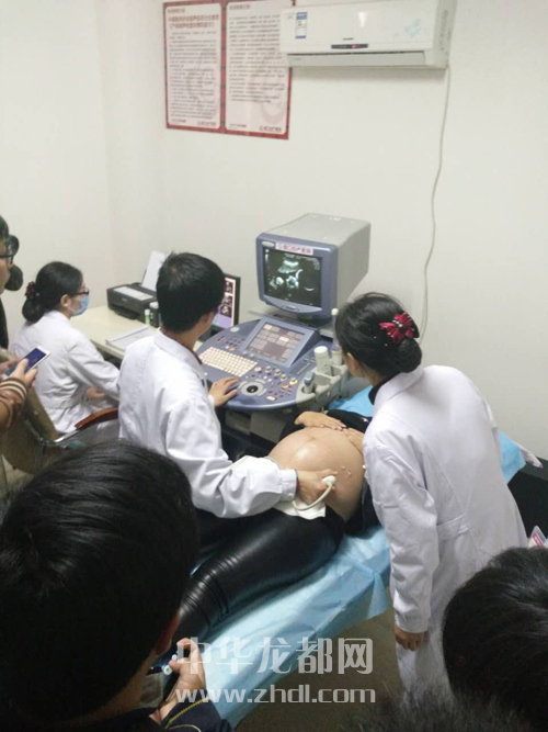 ????當(dāng)日,周口晚報(bào)記者在周口中心城區(qū)漢陽(yáng)南路一家婦產(chǎn)醫(yī)院見到了34歲的孕婦劉女士。她挺著大肚子躺在彩超機(jī)旁,其丈夫和醫(yī)護(hù)人員站在身邊。當(dāng)經(jīng)常幫她檢查的女醫(yī)生對(duì)著胎兒?jiǎn)枴皩殞殻蹅冏鰩椎李}好嗎”時(shí),可以看到孕婦肚子出現(xiàn)兩次跳動(dòng),這被大家解讀為“好的”。隨后,女醫(yī)生問(wèn)“3加2等于幾”,肚子連續(xù)跳動(dòng)5下。醫(yī)生再問(wèn)“9除以3等于幾”時(shí),肚子連續(xù)跳動(dòng)3下。