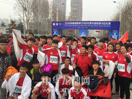 ????本報(bào)訊 千年周口情,萬眾馬拉松。12月18日上午,由中國田徑協(xié)會、中華慈善總會、河南省慈善總會、周口市人民政府主辦,周口市體育局、周口廣播電視臺、周口市慈善總會、河南路跑文化傳媒有限公司承辦的2016河南誠森周口馬拉松暨中國慈善馬拉松賽在我市中心城區(qū)激情開賽,來自世界各地的5300余名選手報(bào)名參加了比賽。