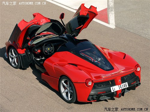 LaFerrari是法拉利推出的一款旗艦級超級跑車,于2013年3月在日內瓦車展首次亮相,以取代法拉利Enzo車型,僅限量499臺。LaFerrari采用被稱為HY-KERS的混合動力系統,一臺6.3升V12自然吸氣引擎可輸出588千瓦的最大功率,電動機獨立輸出120千瓦動力,使得LaFerrari的聯合輸出功率高達708千瓦。LaFerrari的0-100km/h加速時間少于3秒,0-200km/h加速也少于7秒,0-300km/h更只需15秒,極速高達350km/h以上。LaFerrari擁有超凡極致的性能表現、空氣動力效率以及操控性,為超級跑車樹立了新的標桿。