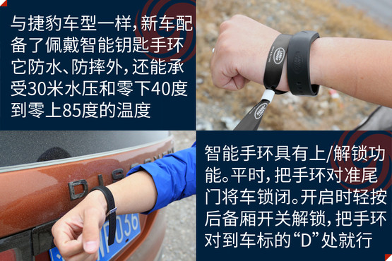 在配置上,新車也做到了盡善盡美,像方向盤加熱、四區(qū)自動空調、全景影像、英國之寶音響系統(tǒng)、后排娛樂系統(tǒng)、雙天窗它都有。智能系統(tǒng)方面,InControl系統(tǒng)除了常見的娛樂、媒體、熱點功能,還可以顯示并調節(jié)大量的車輛輔助信息,并支持遠程控制。此外還可選裝智能手環(huán),實現(xiàn)更方便的隨身鑰匙。