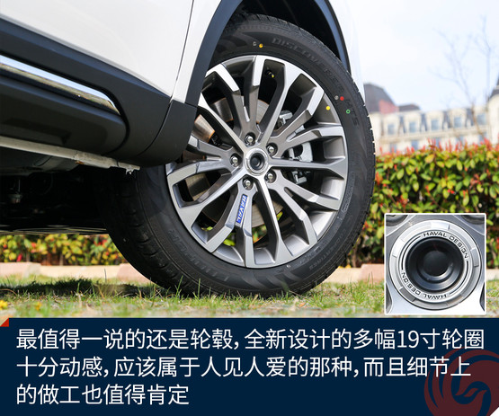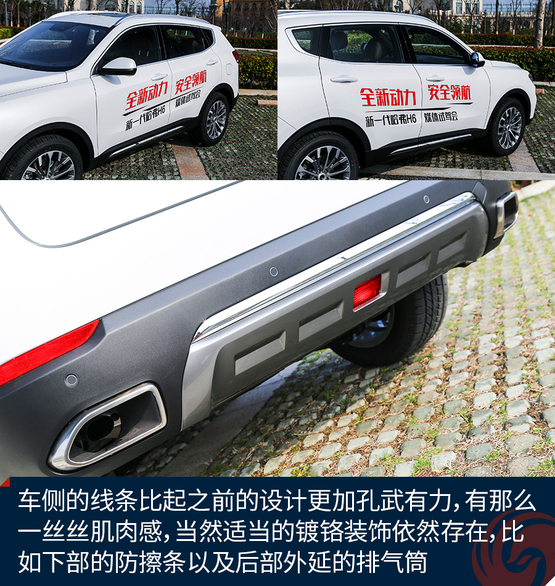 開眼角的設(shè)計雖然已經(jīng)有一陣子了,但是哈弗H6也是剛剛用上,而且頭燈的設(shè)計很簡潔,但是與六邊形的前進氣格柵搭配的感覺剛剛好,在視覺上帶來了十分不錯的沖擊力。車側(cè)的線條比起之前的設(shè)計更加孔武有力,有那么一絲絲肌肉感,當(dāng)然適當(dāng)?shù)腻冦t裝飾依然存在,比如下部的防擦條以及后部外延的排氣筒。最值得一說的還是輪轂,全新設(shè)計的多幅19寸輪圈十分動感,應(yīng)該屬于人見人愛的那種,而且細節(jié)上的做工也值得肯定。