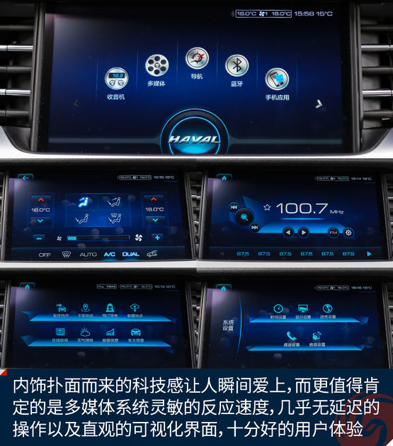 如果說外觀給了你第一重驚喜,那么內(nèi)飾的設(shè)計一定超乎了你對自主品牌的認知,至少我認為,全新哈弗H6上的這套內(nèi)飾,在設(shè)計上已經(jīng)超越了很多合資品牌。撲面而來的科技感讓人瞬間愛上,而更值得肯定的是這套多媒體系統(tǒng)靈敏的反應(yīng)速度,幾乎無延遲的操作以及直觀的可視化界面,都帶來十分好的用戶體驗。
