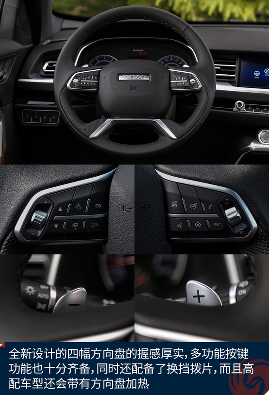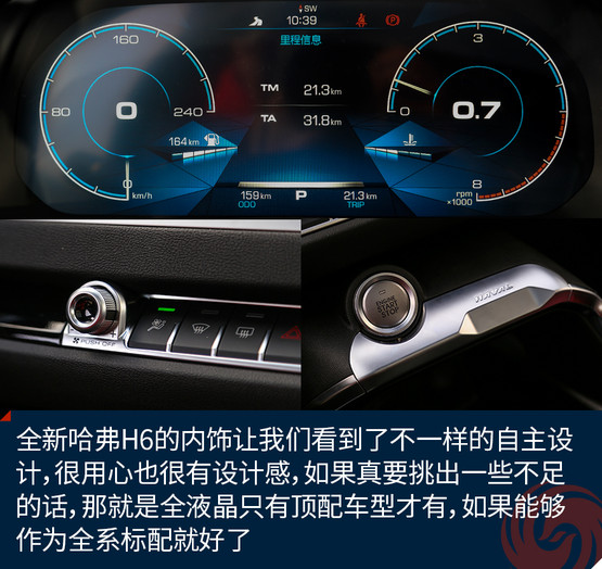 一切以駕駛員為中心的設(shè)計理念值得肯定,微微朝向駕駛員的中控設(shè)計,全新的電子換擋桿以及多媒體控制旋鈕都給我留下了很深的印象,當(dāng)然了全景天窗進一步增加了車內(nèi)空間的開揚感,全新設(shè)計的四幅方向盤的握感厚實,多功能按鍵功能也十分齊備??傊?,全新哈弗H6的內(nèi)飾讓我們看到了不一樣的自主設(shè)計,很用心也很有設(shè)計感,沒有了雜亂無章,相反,這樣的設(shè)計會讓人很愿意和汽車獨處,如果真要挑出一些不足的話,那就是全液晶只有頂配車型才有,如果能夠作為全系標配就好了。