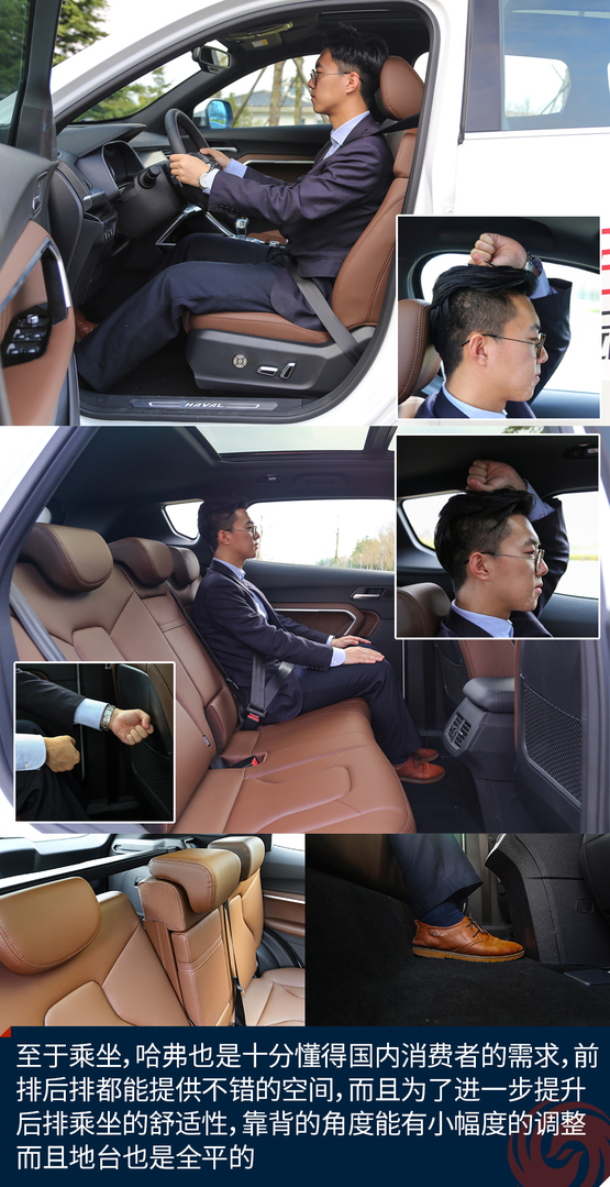 而在儲物空間的表現(xiàn)上,全新哈弗H6也沒有讓人失望,日常用的到儲物空間都很好用,唯一不足的是我們經(jīng)常會用到的USB接口隱藏在前排扶手箱內(nèi),用起來沒那么簡便。至于乘坐,哈弗也是十分懂得國內(nèi)消費者的需求,前排后排都能提供不錯的空間,而且為了進一步提升后排乘坐的舒適性,靠背的角度能有小幅度的調(diào)整,而且地臺也是全平的。