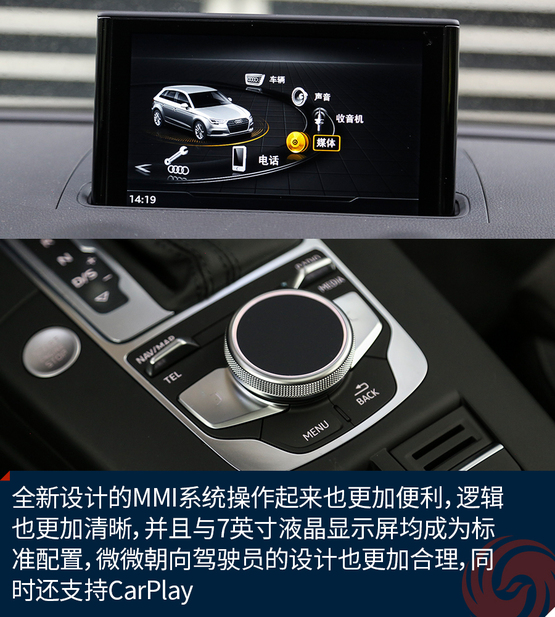 相比較外觀的改變,內(nèi)飾的變化就要少了一些,最直觀的變化莫過(guò)于全新設(shè)計(jì)的真皮方向盤(pán),不僅好看也十分的好用,發(fā)光的迎賓踏板進(jìn)一步增加了車輛的高級(jí)感,中控面板上的鋁合金材質(zhì)的裝飾條質(zhì)感出色,不僅如此,還有多種樣式和材質(zhì)可選;而門(mén)板內(nèi)的Alcantara材質(zhì)進(jìn)一步提升了舒適的觸感,當(dāng)然座椅也同樣采用了Alcantara。另外新增加的USB接口也進(jìn)一步增加了行車的便利性,這也讓A3車內(nèi)的USB數(shù)量增加到兩個(gè)。同時(shí),全新設(shè)計(jì)的MMI系統(tǒng)操作起來(lái)也更加便利,邏輯也更加清晰,并且與7英寸液晶顯示屏均成為標(biāo)準(zhǔn)配置,微微朝向駕駛員的設(shè)計(jì)也更加合理,同時(shí)還支持CarPlay。