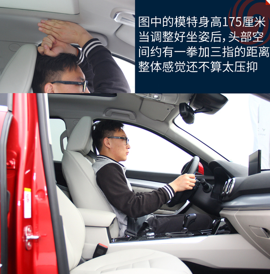 體驗(yàn)者身高175厘米,前排座椅降到最低的時(shí)候頭部還有比較充足的余量,完全不會(huì)感覺到壓抑;不過后排頭部就不太行了,頭部距離車頂非常接近,要是身高再高一些的乘客坐進(jìn)后排,已經(jīng)基本上快頂?shù)筋^了。儲(chǔ)物空間中規(guī)中矩,基本上沒有太多讓人驚喜的地方。扶手箱的空間不小,高度也合適,可以放些雜物。