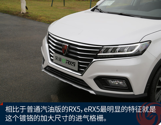 榮威eRX5的外觀設(shè)計來自于上汽榮威家族最新的“律動設(shè)計”語言,整體外觀呈現(xiàn)出的是“鯨頭燕尾”的特點。通過車頭下壓、腰線勾勒、尾部內(nèi)切等設(shè)計,詮釋了“律動”的美學理念。與汽油版RX5相比,車頭的鍍鉻前格柵尺寸更加大,造型更為舒展,與大燈融為一體。eRX5基于RX5采用的SSA+平臺打造,提供了插電版與純電版兩個版本,這兩款車實際幾乎是同時開發(fā)的,尺寸方面更是一模一樣。插電版的eRX5車身兩側(cè)分別為加油口和充電口,純電動續(xù)航60公里,綜合續(xù)航650公里。車身隨處可見新能源的標識,并且還擁有新能源的專屬顏色銀葉金。