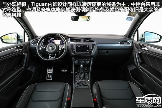 與外觀相似,Tiguan內(nèi)飾設(shè)計(jì)同樣以凌厲硬朗的線條為主,中控臺(tái)采用非對(duì)稱造型,空調(diào)及多媒體略向駕駛側(cè)傾斜,飾條及顏色搭配依舊是大眾的經(jīng)典風(fēng)格,雖然大面積覆蓋軟性搪塑材質(zhì),但手感稍硬,不過(guò)接縫相當(dāng)緊實(shí),足以展現(xiàn)進(jìn)口車風(fēng)范。