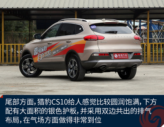 側(cè)面看過(guò)去,獵豹CS10采用一條剛勁十足的腰線從頭燈到尾燈,展現(xiàn)出了蓄勢(shì)待發(fā)的車(chē)身姿態(tài),同時(shí)鍍鉻窗框亮條的使用讓該車(chē)看上去更加豪華大氣。尾部方面,獵豹CS10給人感覺(jué)比較圓潤(rùn)飽滿,下方配有大面積的銀色護(hù)板,并采用雙邊共出的排氣布局,在氣場(chǎng)方面做得非常到位。