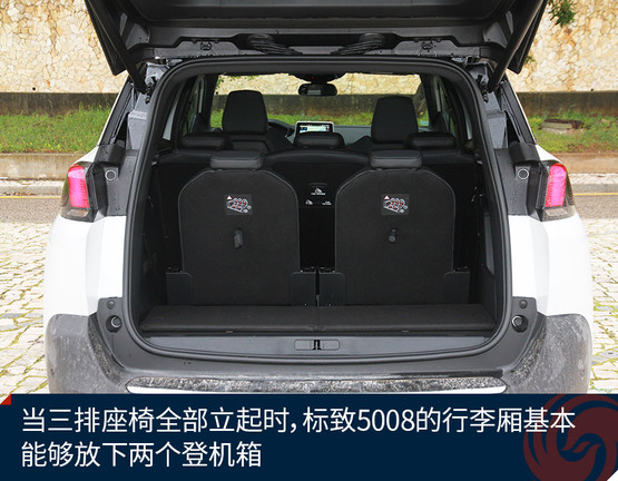 標致5008提供了三排座椅還有另外一個顯著的好處是,可以豐富行李廂的使用方式。通過實際體驗可以發(fā)現,當三排座椅全部立起時,標致5008的行李廂基本能夠放下兩個登機箱,但如果第三排不需要坐人時,可以將第三排完全放平(甚至不會發(fā)現有第三排的存在),此時行李廂放兩個大號托運箱應該也是沒有問題的。