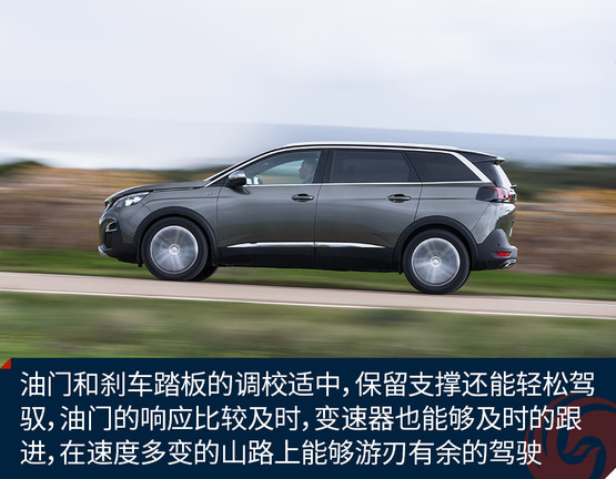 油門和剎車踏板的調校也如是,踏板腳感適中,保留支撐還能輕松駕馭,并不像多數歐系車那樣沉重。油門的響應比較及時,變速器也能夠及時的跟進,在速度多變的山路上能夠游刃有余的駕駛。唯一的問題是低功率的1.6T在動力上沒有突出的表現,尤其在上坡時,加速會稍感吃力,但是想到這事一款家用SUV,這也就不是問題了。而且標致5008在國內的主力車型將會是1.8T版本,動力還會再上一個臺階。