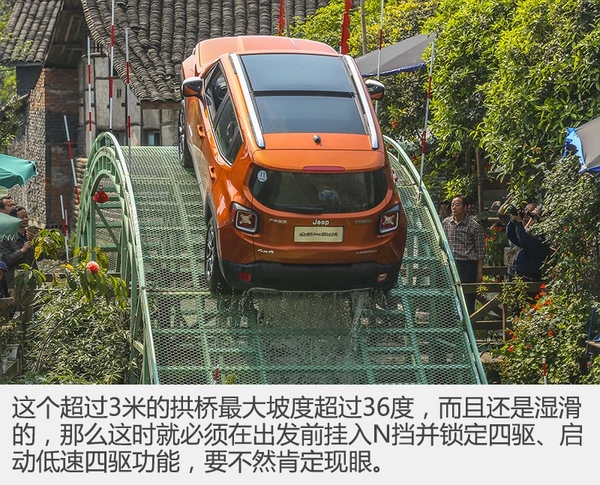 得瑟的原因在于有實(shí)力,讓同級(jí)別任何一個(gè)車(chē)型來(lái)完成,恐怕都得失敗,所以這更像是一場(chǎng)表演;坐在車(chē)?yán)锔由钣懈杏|,河道涉水不算難度,只是有些埋設(shè)的交叉軸和炮彈坑,只要速度不快就完全沒(méi)難度;然而那個(gè)又高又陡的鐵拱橋,沖上鐵橋的一瞬間就是臉朝天屁股朝地,挺嚇人的,下橋的時(shí)候就反過(guò)來(lái)臉朝地屁股朝天,也挺難受的。有驚無(wú)險(xiǎn)無(wú)難度的自由俠在這里秀出了自己真正的實(shí)力,同級(jí)別最強(qiáng)四驅(qū)和最強(qiáng)非鋪裝通過(guò)性實(shí)至名歸。