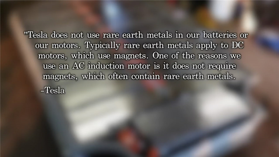 ????????視頻最后還討論了關(guān)于電動車中使用到的稀土資源,以及電池的后期回收問題。特斯拉使用了交流感應(yīng)電機而非直流電機的原因就是為了少使用稀有的稀土。