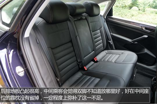 ????????全新帕薩特的內(nèi)部乘坐空間還是挺大的,美中不足的是后排地板的凸起比較高,好在后排中間座位配有頭枕,而且座椅整體設(shè)計的比較寬大,乘坐舒適性還是有保證的。