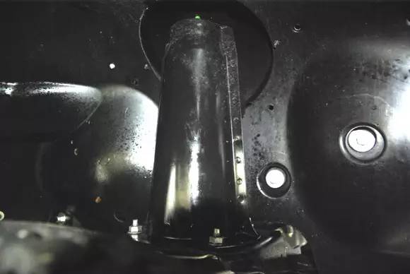 ????衛(wèi)士的大梁及中央差速器特寫(xiě),圖中可以看到衛(wèi)士的大梁非常的厚實(shí)粗壯。