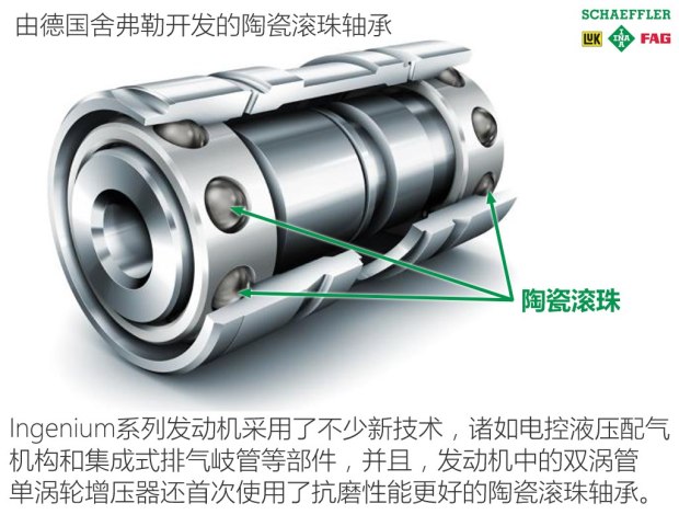????除此以外,這款發(fā)動(dòng)機(jī)還配備了當(dāng)前的主流技術(shù),包括頂置直噴、進(jìn)氣和排氣的VVT可變正時(shí)系統(tǒng),集成式排氣歧管以及滾子搖臂氣門驅(qū)動(dòng)結(jié)構(gòu)。帶陶瓷滾珠軸承的增壓器來自德國(guó)舍弗勒,由于陶瓷材料特性,理論上可以在結(jié)構(gòu)方面解決增壓器因長(zhǎng)時(shí)間使用后軸承磨損,進(jìn)而導(dǎo)致的機(jī)油消耗問題。