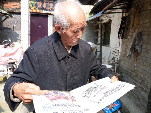 當日上午,周口晚報記者一行從周口中心城區(qū)出發(fā),到達淮陽縣醒眾街,尋訪抗戰(zhàn)老兵朱永新。幾經輾轉,從醒眾街附近一條不起眼的小胡同進入,接連拐了幾道彎,周口晚報記者來到一座不大的瓦房前——這里就是朱永新的家。
