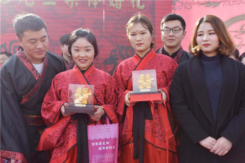 中華龍都網(wǎng)訊(周口報(bào)業(yè)全媒體記者 徐松 通訊員 胡恩來(lái) 文/圖)1月1日,鄲城縣文明辦、縣總工會(huì)、團(tuán)縣委、縣婦聯(lián),組織16對(duì)新人在鄲城世紀(jì)廣場(chǎng)共同舉辦主題為“丹城佳緣、緣定今生”集體婚禮,以此破除“天價(jià)彩禮”和奢侈浪費(fèi)陋習(xí),倡樹婚事簡(jiǎn)辦、勤儉節(jié)約新風(fēng)。