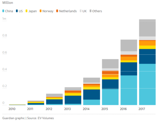 經(jīng)證實(shí),至2017年11月底,全球電動汽車保有量已超過300萬輛。2017年前11個月電動汽車銷量超過100萬。