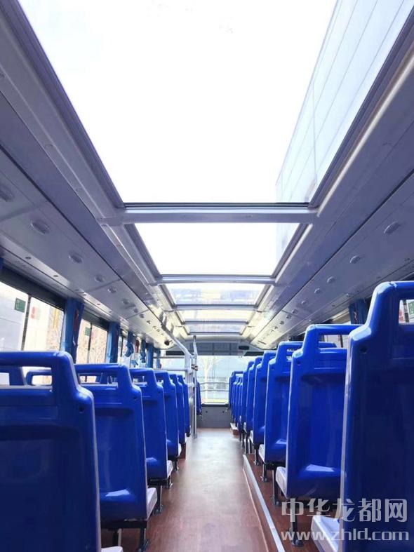 記者順著步梯來(lái)到第二層,視野頓時(shí)開(kāi)闊起來(lái)。原來(lái)該層頂部設(shè)計(jì)有6塊全景天窗,乘客坐在第二層不但不會(huì)有壓抑的感覺(jué),反而會(huì)視野開(kāi)闊,便于游覽周口街景。記者注意到,在全景天窗下面有遮陽(yáng)板,乘客可以用來(lái)遮擋陽(yáng)光。
