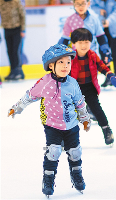 小朋友在武漢冰龍國(guó)際滑冰俱樂(lè)部上課。新華社記者肖藝九攝
