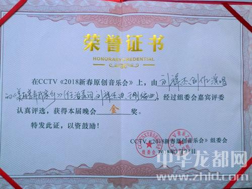 中華龍都網(wǎng)訊(周口報(bào)業(yè)全媒體記者馬治衛(wèi))1月21日,CCTV第六屆新春原創(chuàng)音樂盛典暨頒獎盛典在北京舉行,太康籍詞作家任治森原創(chuàng)歌曲《美麗普弄我家鄉(xiāng)》榮獲2018新春原創(chuàng)歌曲金獎。
