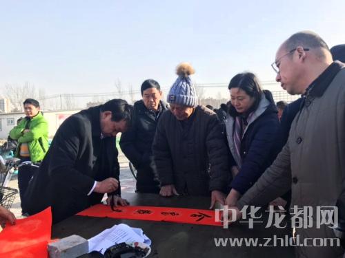 中華龍都網(wǎng)訊 (周口報業(yè)全媒體記者 徐啟峰)2月11日下午,氣清天朗,陽光煦暖。在川匯區(qū)人和辦事處興業(yè)社區(qū)廣場,一場盛大的文化盛宴在這里舉行——川匯區(qū)文化局組織了一臺精彩大戲,區(qū)文聯(lián)邀請十位知名書法家為居民義寫春聯(lián),其中一位書法家是川匯區(qū)政府區(qū)長李宗喜。