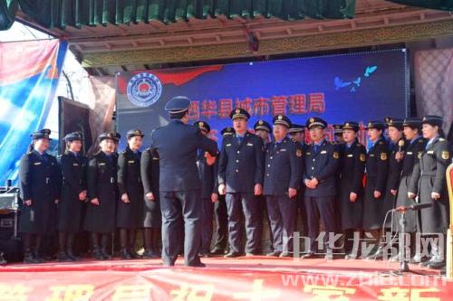 伴隨著熱鬧的龍獅表演,演出正式開始。一首由城管局班子成員和部分執(zhí)法隊員合唱的《沒有共產(chǎn)黨就沒有新中國》拉開演出序幕,隨后的歌曲、豫劇選段、架子鼓表演、詩朗誦等節(jié)目將此次文藝演出次第推向高潮。