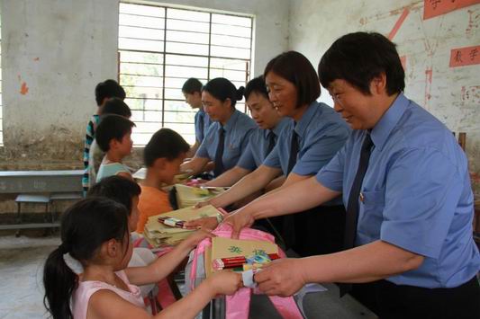 該院2013年成立了“檢察官媽媽”愛心服務(wù)隊,與貧困家庭結(jié)成對子,一對一的幫扶,為貧困的留守兒童解決生活、學(xué)習(xí)上的實際困難。每年的“六 一”兒童節(jié)、中秋節(jié)、春節(jié)期間慰問貧困兒童,給他們帶去學(xué)習(xí)用具、衣物為他們表演自編自演的節(jié)目。女檢察官們用女性特有的細(xì)心、耐心和愛心,不但在物質(zhì)上給予幫助,在心靈上給予關(guān)懷,讓他們在陽光下健康快樂的成長。
