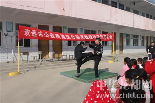 中華龍都網(wǎng)訊 (周口報業(yè)全媒體記者 宋風 通訊員 王天晨 文圖)3月12日,周口港區(qū)郭河小學校園內(nèi)掌聲雷動,學生們在操場上興奮地觀看港區(qū)民警演示的“擒敵拳”和防身“格斗術(shù)”。這是周口市公安局周口港區(qū)分局在轄區(qū)學校內(nèi)開展的十九大精神宣講和法制教育講座及自我防范技能課。3月份以來,港區(qū)民警已在轄區(qū)24所中小學及幼兒園開展此項活動21場。