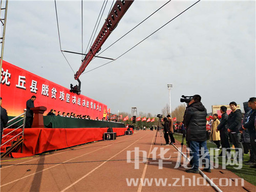 中華龍都網(wǎng)訊(周口報(bào)業(yè)全媒體記者韋偉 通訊員王佳佳)2018年3月16日10點(diǎn),沈丘縣新區(qū)廣場,一場近萬人參與的脫貧攻堅(jiān)決戰(zhàn)決勝誓師大會(huì)正在有序推進(jìn)。