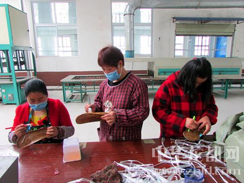 卞路口鄉(xiāng)高山店村的一家鞋廠,留守婦女正在加工鞋底。該縣在扶貧攻堅(jiān)中,通過(guò)實(shí)施資金幫扶、技術(shù)培訓(xùn)等措施幫助貧困群眾、返鄉(xiāng)農(nóng)民工創(chuàng)辦玩具廠、制鞋廠等微型企業(yè),為周邊群眾提供了就業(yè)崗位。