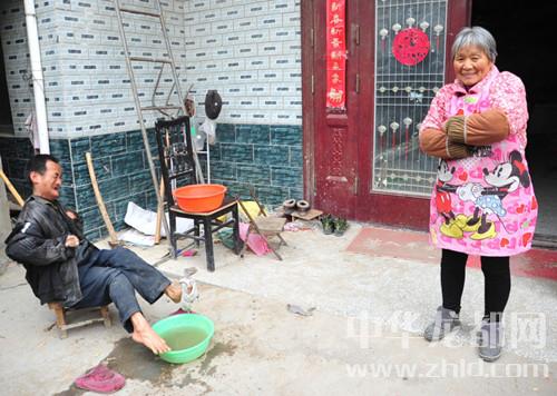 中華龍都網(wǎng)訊(周口報(bào)業(yè)全媒體記者 李瑞才 通訊員 胡洪濤文/圖)張紅印是鹿邑縣鳴鹿辦事處麻窩張村一名低保重度殘疾人,今年44歲,他一歲時(shí)患小兒麻痹癥導(dǎo)致四肢和大腦殘疾,雙臂萎縮、雙腿僵硬,走起路來(lái)?yè)u搖晃晃,只有兩只腳能用上,勉強(qiáng)趔趔趄趄走路?!斑@孩子起小得病,他是老大,我七個(gè)孩子,沒(méi)錢看病,小時(shí)候也沒(méi)少費(fèi)勁,到十歲才發(fā)現(xiàn)他想干些活,發(fā)現(xiàn)他會(huì)燒鍋。然后我就想他手不能用還有腳,我要教會(huì)他,我死后起碼他能自己生活?!眿寢尷钚绿m抹著淚說(shuō)。