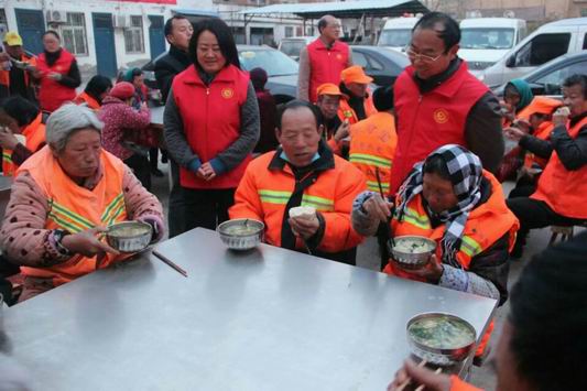 一位老大娘走進(jìn)就餐點(diǎn),張玉潔上前把大娘攙扶坐下,忙端來熱騰騰的雞蛋湯、饅頭并讓老人家慢慢吃。老人家哽咽著說:“我是芝麻洼鄉(xiāng)里人,給這住閨女家,走到這見人很多過來看看,沒想到這是免費(fèi)吃早飯的地方,還都端到跟前、對我恁好,除了俺仨閨女沒有人對我老婆子這樣好過,我是哪輩子修來的福啊!