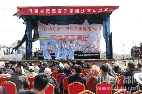 中華龍都網(wǎng)訊(周口報(bào)業(yè)全媒體記者 張猛)桃花朵朵競(jìng)相開(kāi),歌聲陣陣花中來(lái)。3月26日上午,河南省歌舞演藝集團(tuán)送文化進(jìn)基層活動(dòng)走進(jìn)西華縣第十四屆桃花節(jié)。伴隨著悠揚(yáng)的歌聲,本屆桃花節(jié)徐徐拉開(kāi)帷幕。