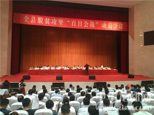 李剛、付吉廣、李國際、雷申等所有在家縣處級領(lǐng)導(dǎo)出席會議。縣委各部委、縣直各單位主要負(fù)責(zé)人以及全縣各鄉(xiāng)鎮(zhèn)(辦事處)黨政正職、分管脫貧攻堅副職、扶貧辦主任、新老駐村工作人員、部分幫扶企業(yè)代表近千人參加會議。