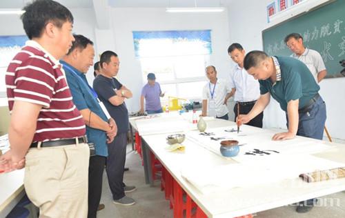 李世棟、姚海城都是當(dāng)?shù)氐臅◥酆谜?,?jīng)常寫寫畫畫,時常在電視或電腦上看一些書法名家的講座,但是還都沒有過與書法名家面對面交流的經(jīng)歷。所以,他們一聽說有書法家進(jìn)校園的活動,都急匆匆地從收麥現(xiàn)場向王坡寨學(xué)校趕去。